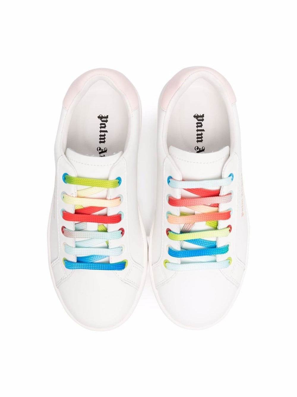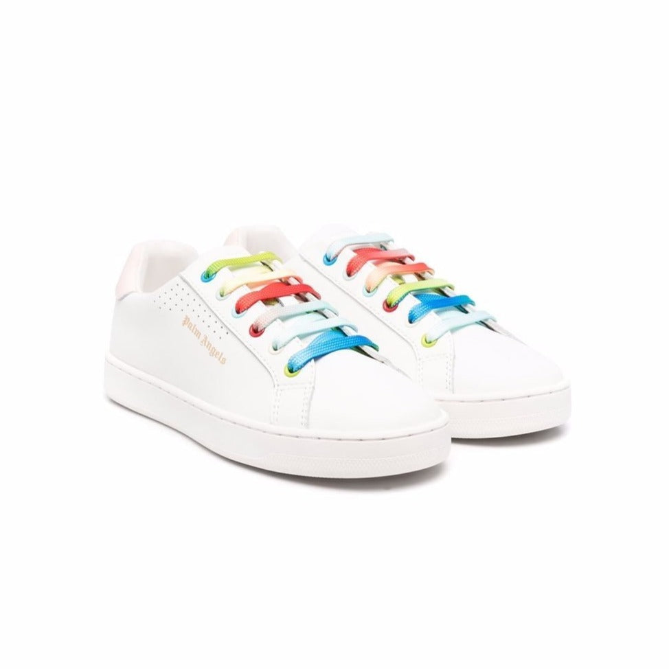 PALM ANGELS White Leather Sneakers With Colourful Laces. Mini-me style footwear from the urban luxury brand Palm Angels.