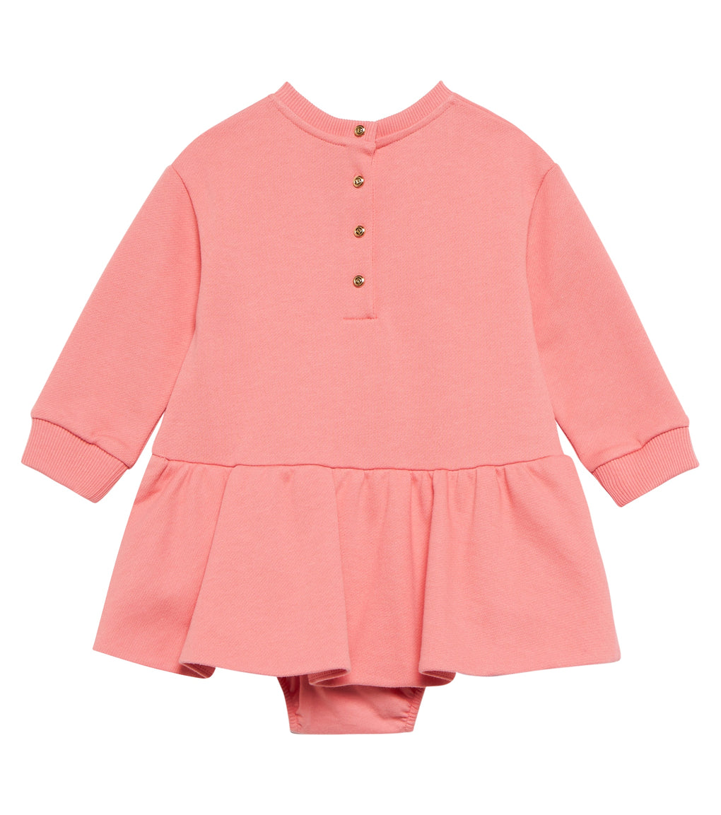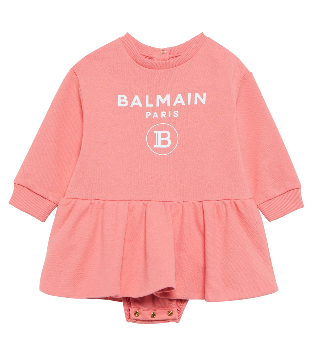 BALMAIN KIDS Coral Dress For Babies and Toddlers. Logo print on front, long sleeves, easy fastening on the back. High quality cotton dress for little girls for parties and everyday use.