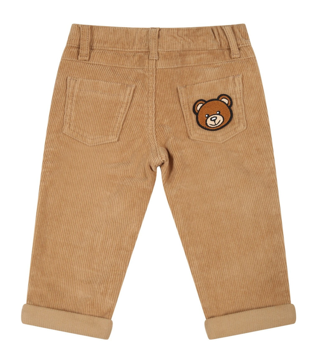 MOSCHINO BABY Beige velvet trousers with iconic Moschino teddy bear. Easy fastening. Very elegant trousers, limited stock left.
