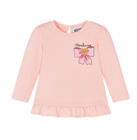 MOSCHINO BABY Long Sleeves T-shirt With Teddy Bear and Bow Illustration. Elegant fashion item for little girls.