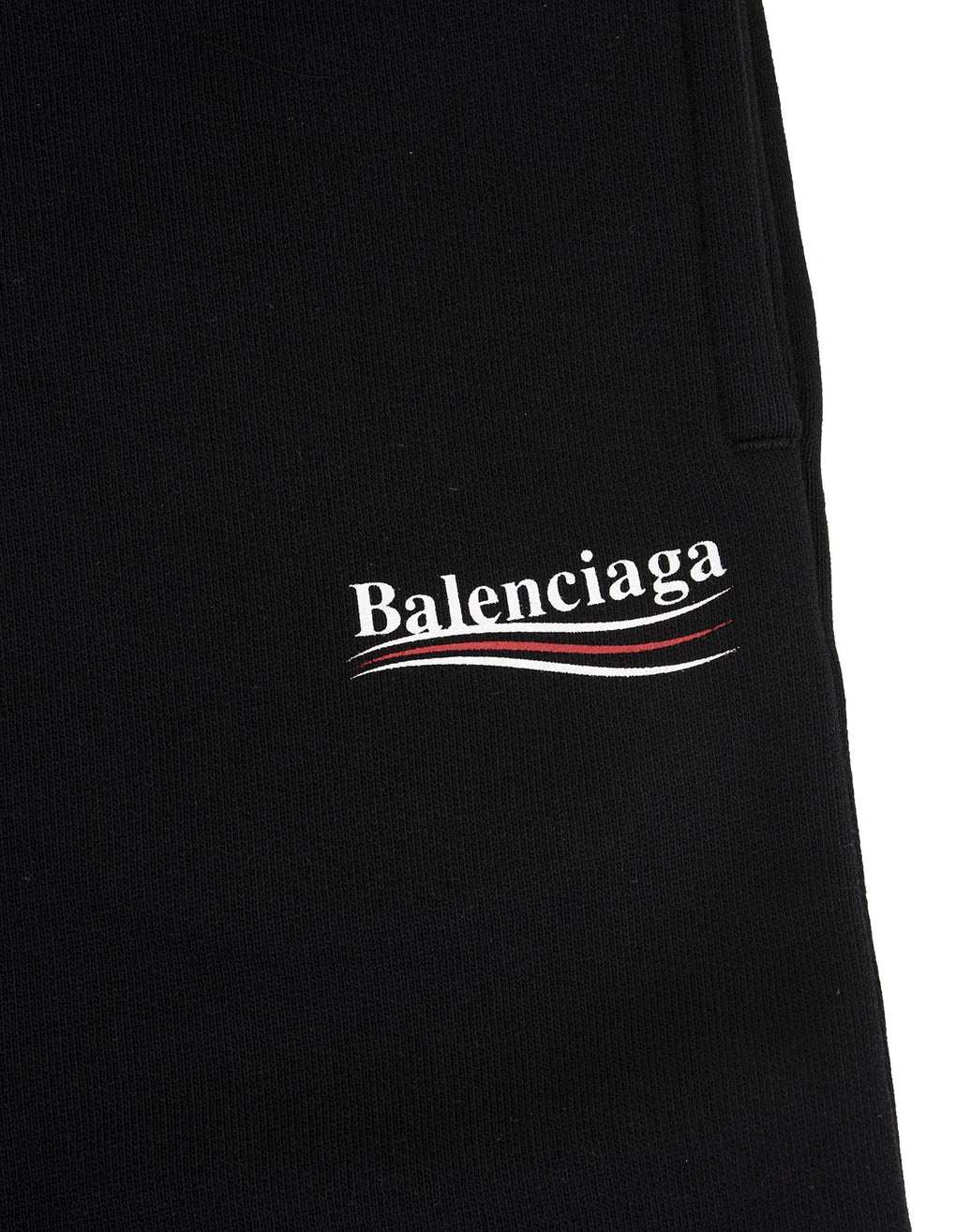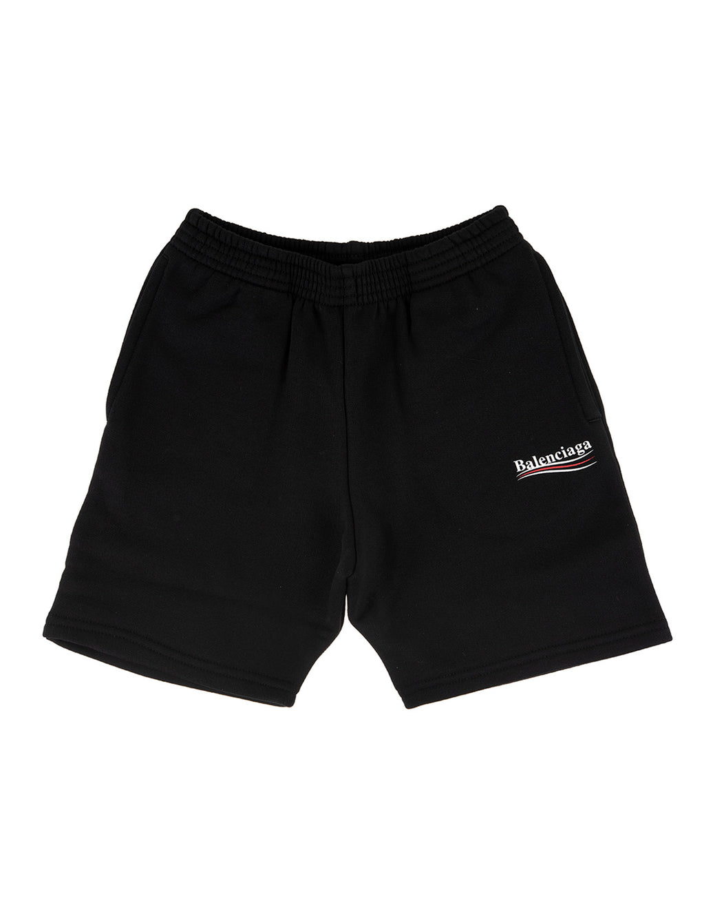 BALENCIAGA KIDS Black Shorts With Logo. Comfortable black shorts for boys and girls with a red and white Political Campaign logo print. Mini-me style inspired by Balenciaga adult collection.