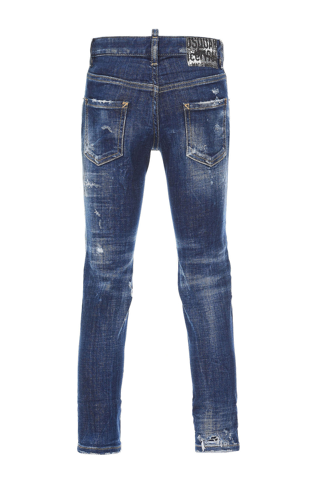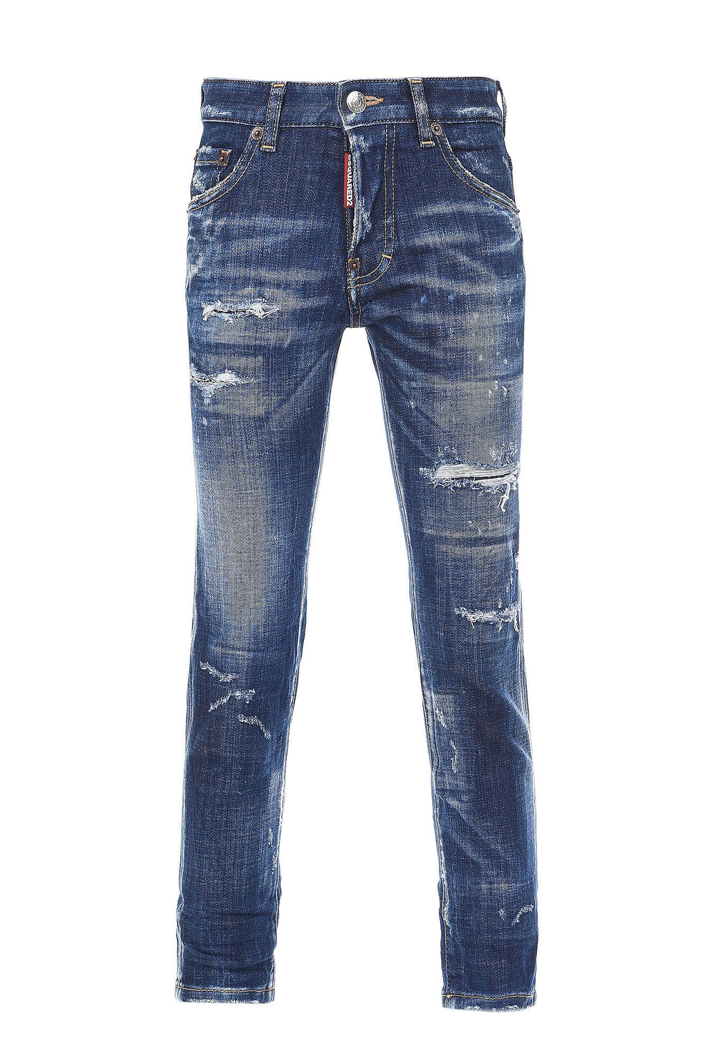 DSQUARED2 KIDS Blue Denim Trousers With Ripped Details. Mini-me style jeans, loose fit.