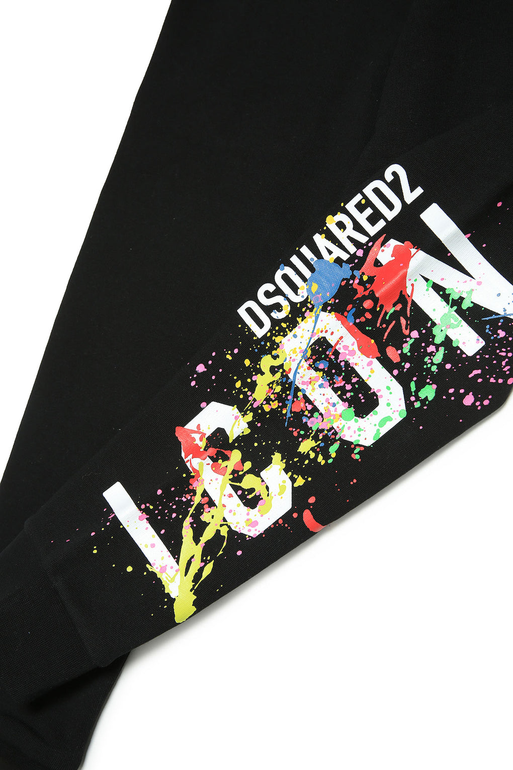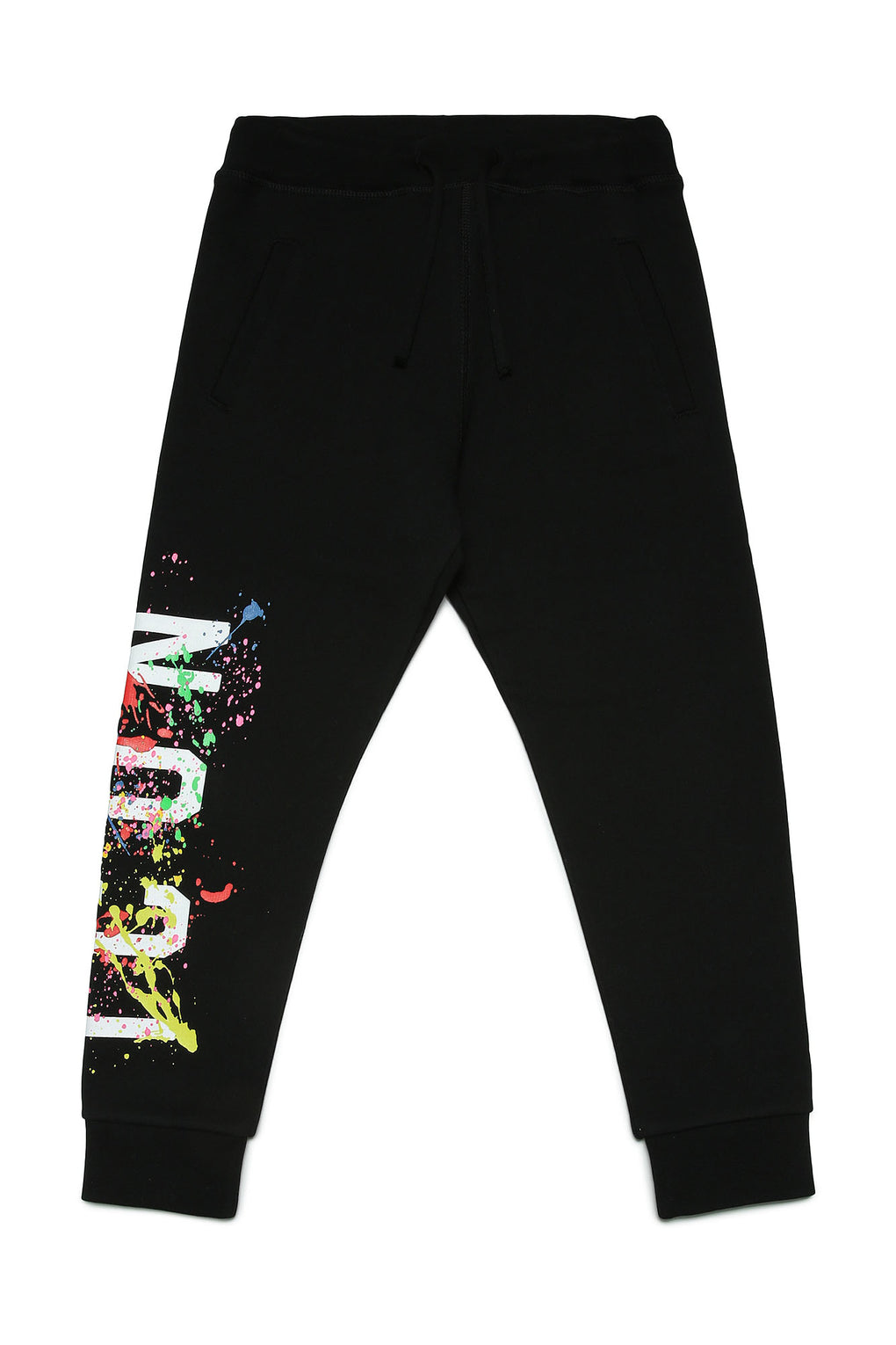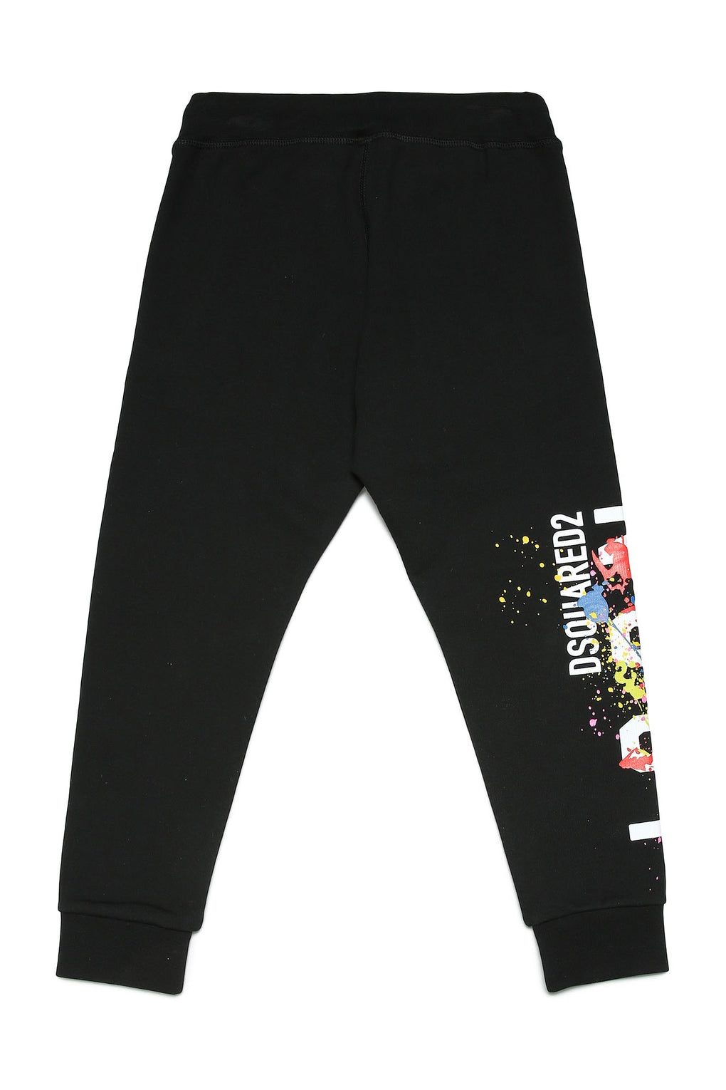DSQUARED2 KIDS Black Icon Print Sweatpants with colourful splash illustration. Branded black sweatpants with ICON logo. Inspired by Dsquared2 adult collection. Limited edition.