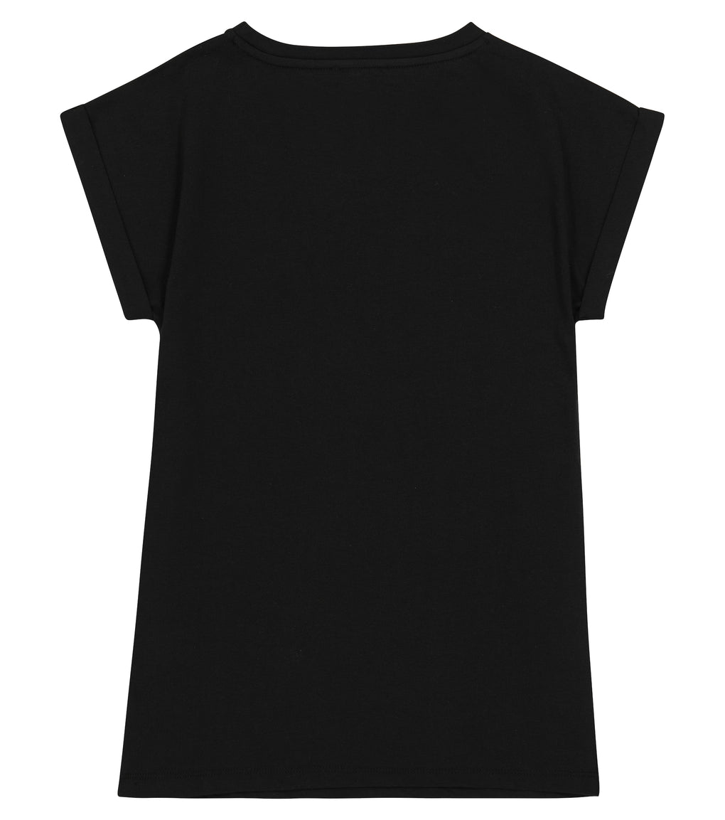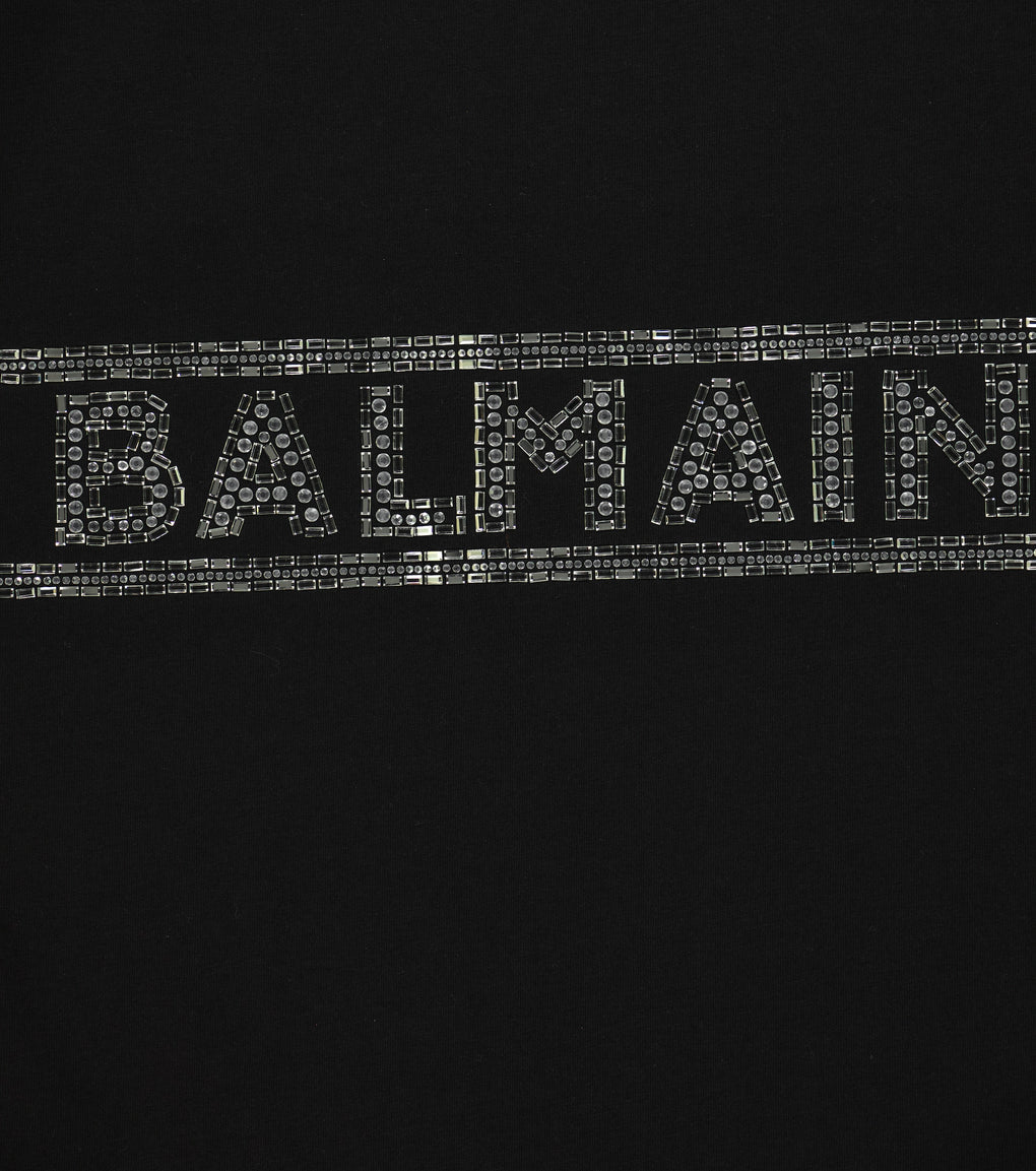 BALMAIN KIDS Black Mid-Length T-shirt Dress With Elegant Crystal Logo Details. Unique luxury fashion item that stands out. Inspired by Balmain adult collection.