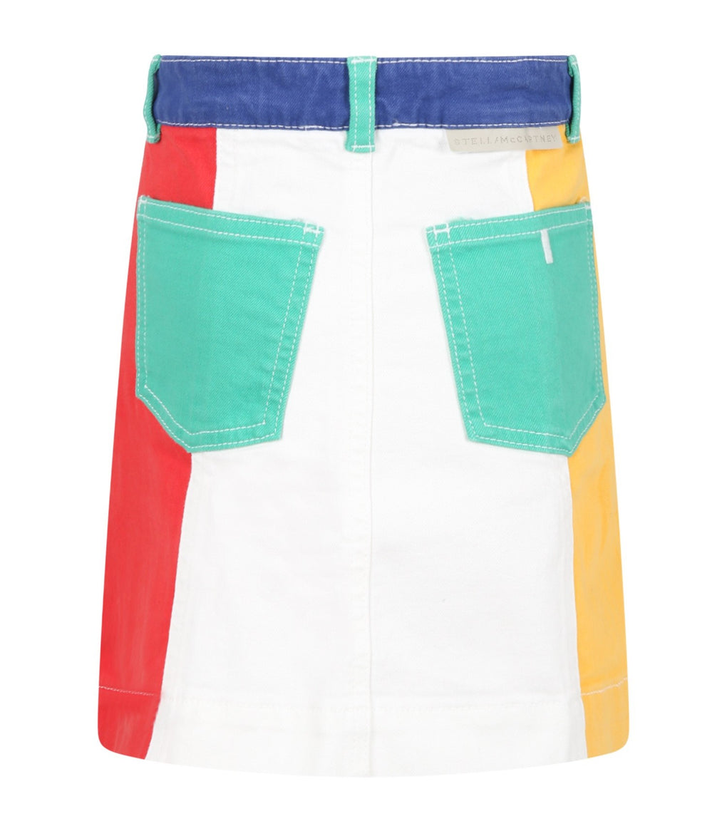 STELLA MCCARTNEY KIDS Colour Block Denim Skirt. Fun organic cotton skirt with button fastening on front. Denim skirt is from Stella McCartney Kids spring summer collection.