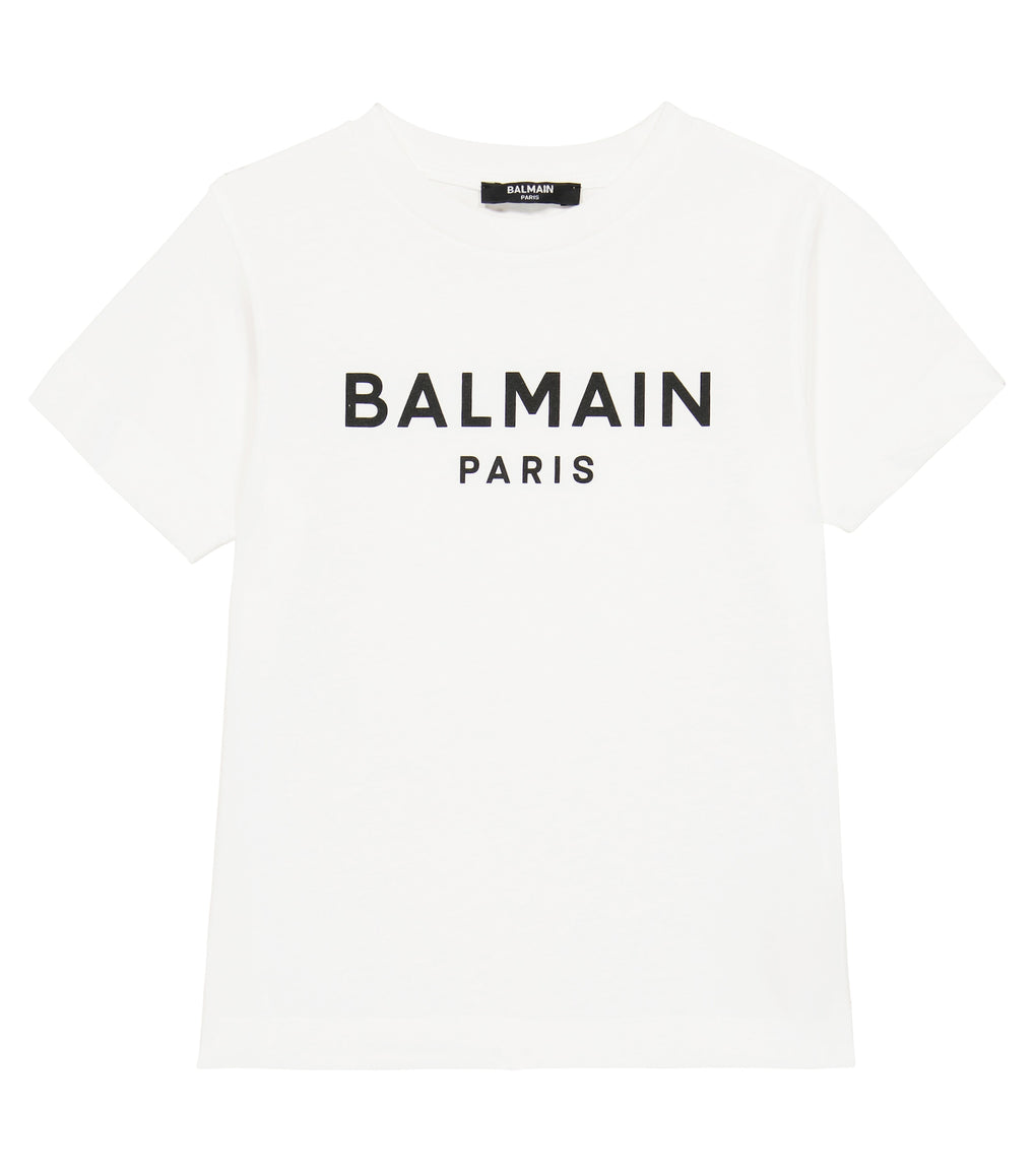 BALMAIN KIDS White T-shirt With Black Logo. Classical fit unisex t-shirt for both boys and girls. Inspired by Balmain adult collection.