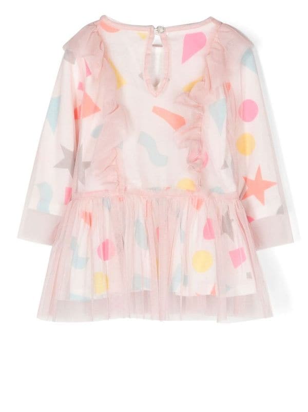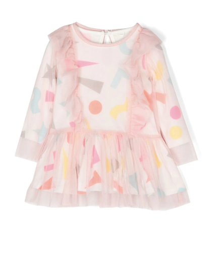 STELLA MCCARTNEY KIDS Colourful Tulle Dress for Babies and Toddlers. Light pink long sleeves organic tulle dress with all-over print decoration. Comes with matching panties.