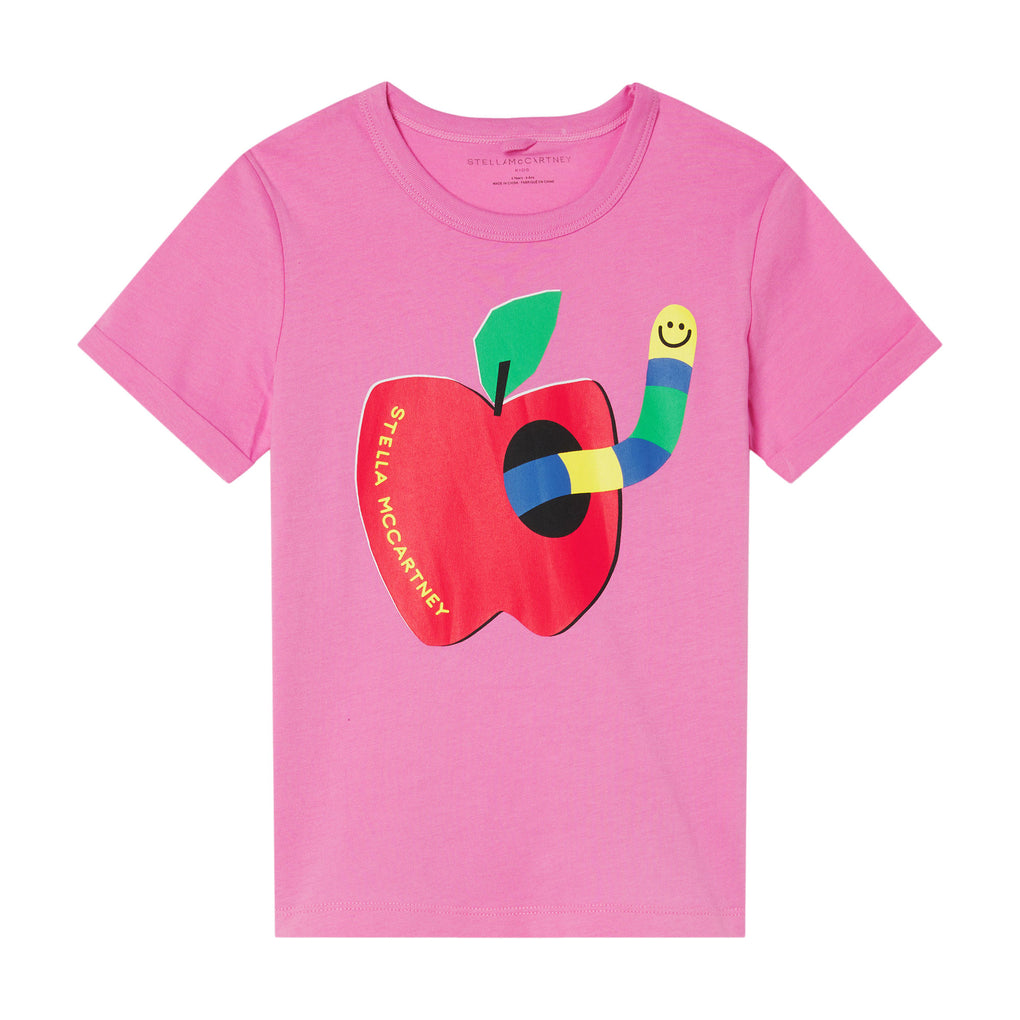 STELLA MCCARTNEY KIDS Pink T-shirt With Red Apple and Yellow Stella McCartney logo. Regular fit organic cotton t-shirt.